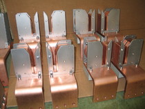 Anschlussbohrungen für Stromseile oder Strombänder nach Vorgabe. Für die Übertagung von hohen Strömen bei niedrigen Warengewichten z.B. in Eloxalanlagen oder ABS-Galvanikanlagen.